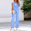 Dette moderne designet har en skreddersydd, ermeløs blazer med skarpe linjer og en strukturert krage. Den gir et elegant og sofistikert utseende som passer både på dagtid og om kvelden. Den rene silhuetten holder deg kjølig og uanstrengt hele dagen.